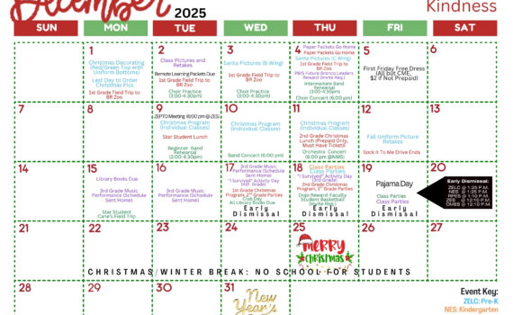 Parents: Please use our Pre-K through 6th grade activities calendar as a quick reference for the month of December.#WeAreZachary